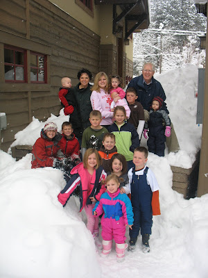 This is the whole Smith clan! We are many! We were only missing one sibling and that is Jesse's sister Cali. We were sad because we missed her homecoming by a week. We hopefully get to see her soon! There are 10 children altogether and...um...14 grand children, I believe! We had a great time at the cabins in McCall. We loved being in the snow, even though we aren't so used to the snow or the cold.